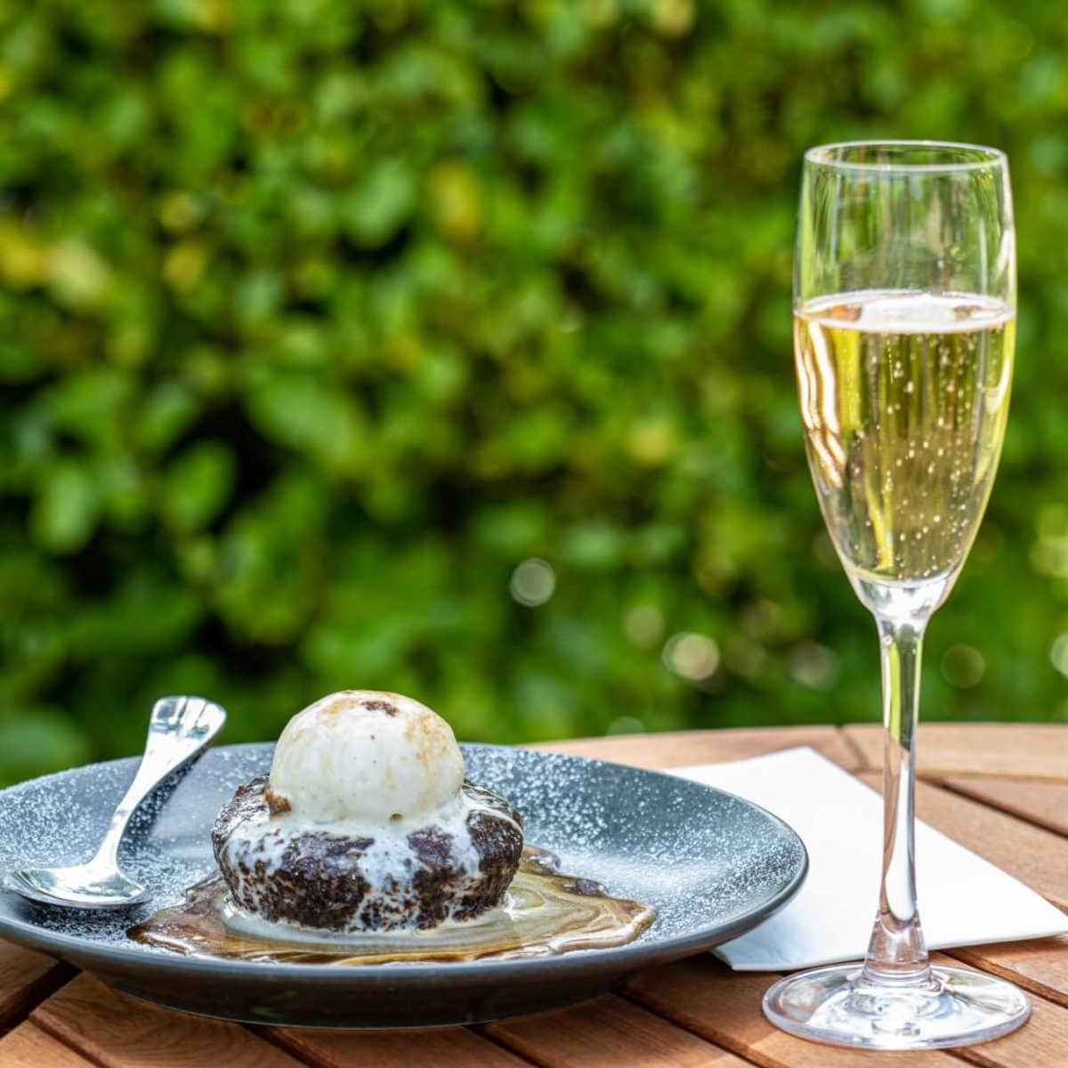 Salted caramel chocolate brownie, ice cream (v) 423 kcals