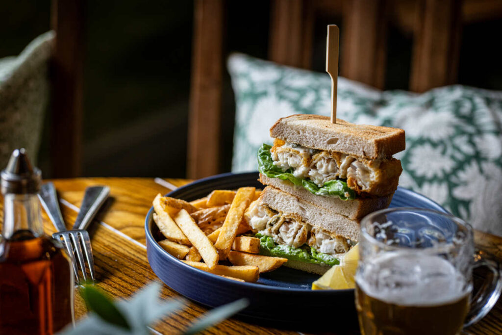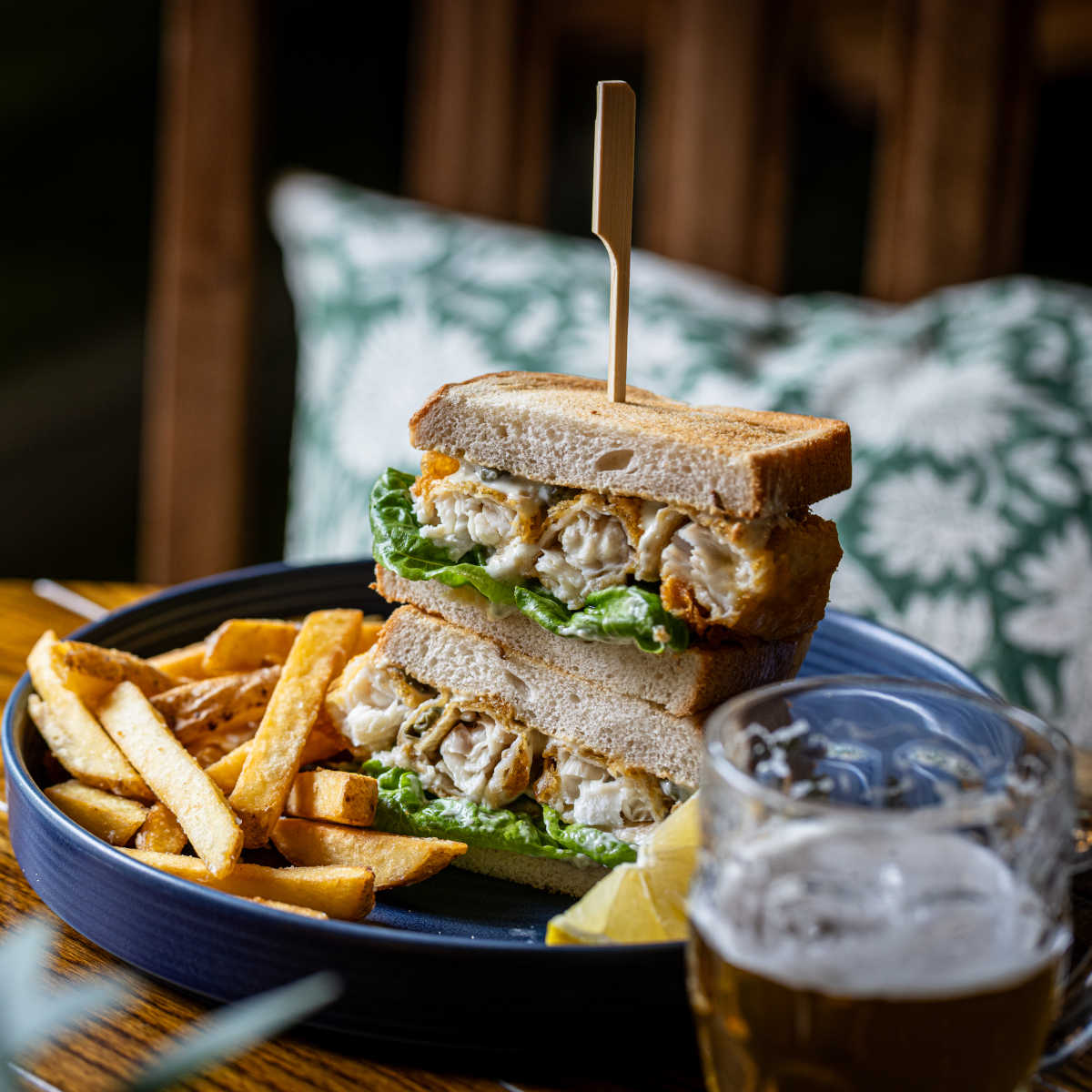 Beer-battered fish fingers, tartare sauce, toasted farmhouse bloomer (†) 10.50 kcals